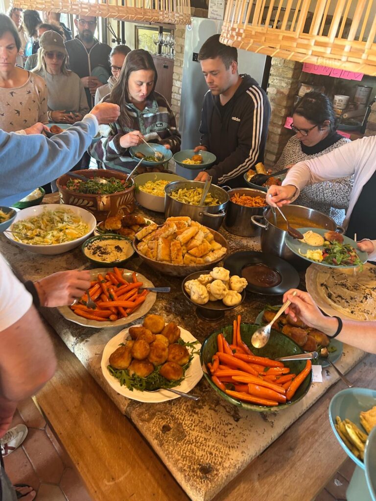 Potluck-Dinner: Besonders schön waren bei der letztjährigen Workations unsere spontanen Kochabende. Das ganze läuft wie folgt ab: wir vereinbaren ein Küchenmotto für den Abend (z.B. Pasta, Mexikanisch, …) und alle, die ab 19 Uhr gemeinsam essen wollen, treffen sich draußen an einer langen Tafel und bringen Essen zum Teilen mit. Aber auch Essen gehen ist jeden Abend möglich.