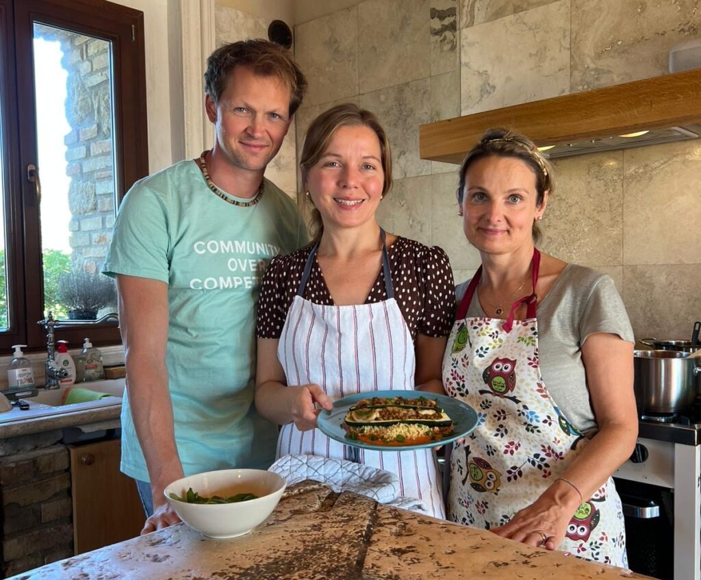 Bei unserer letzten, großen Workation in der Toskana hatten wir die wunderbare Heike Gäbler als Retreat-Köchin dabei. Das Angebot wurde begeistert angenommen und die Teilnehmenden waren von den kulinarischen, vegetarischen Gerichten begeistert, die Heike und Team täglich frisch zubereitet haben. Dabei hat Heike nicht nur ein sehr abwechslungsreiches Menü serviert, sondern alles bis ins kleinste Detail frisch zubereitet.